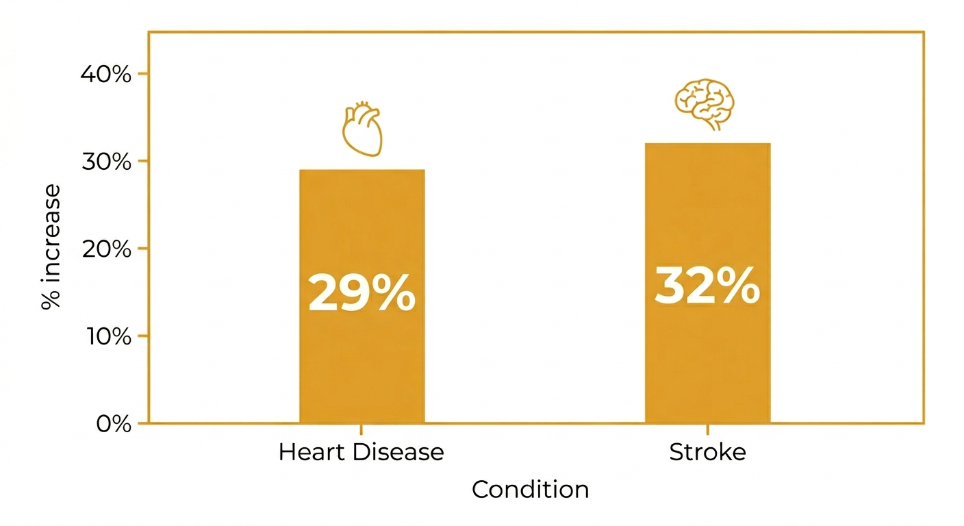 29% ↑ heart disease& 32% ↑ stroke among those who are socially isolated.