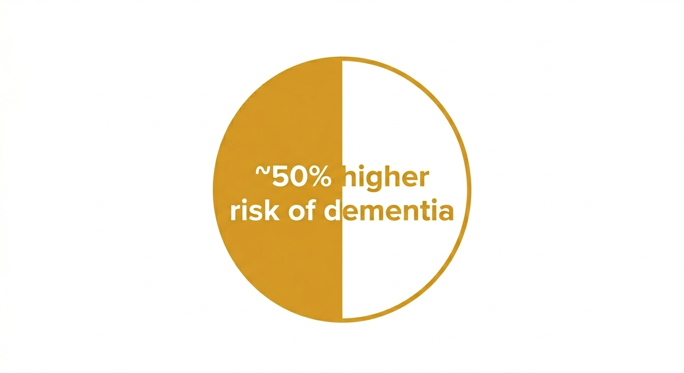 Social isolation is associated with an approximately 50% increased risk of dementia.
