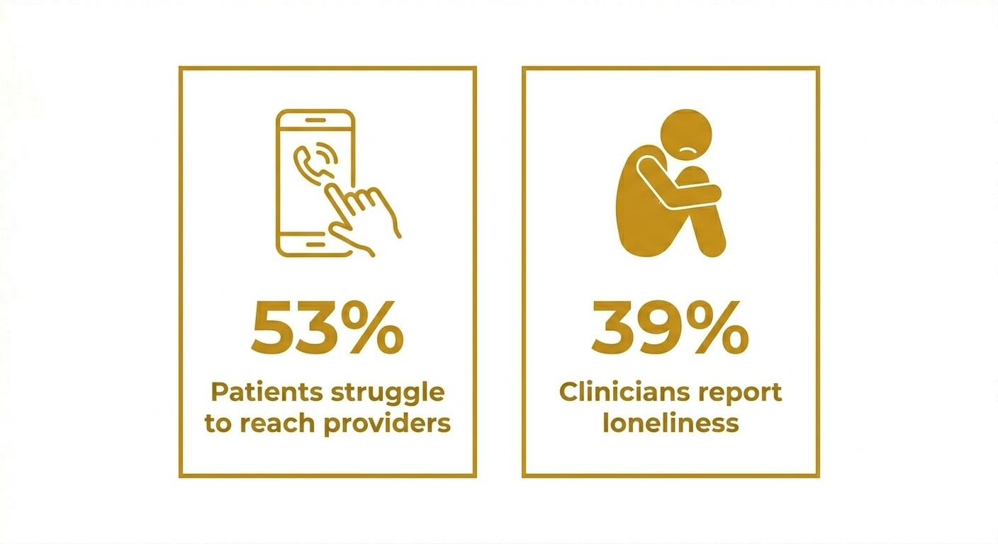 39% of physicians and nurses in some hospital settings identified loneliness as a major stressor, which can lead to burnout and a reduced capacity for empathetic, time-intensive patient interaction.